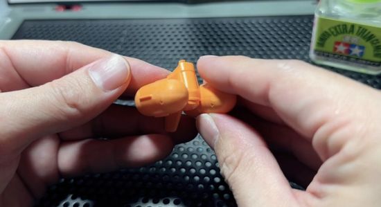 合わせ目消しを行うことではめ込んであるパーツ同士の一体感を出し、よりリアルなロボット感を出していく事が可能です!